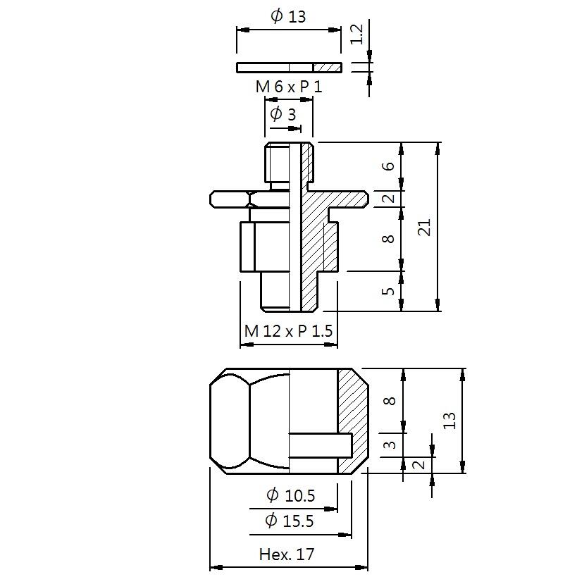 真空螺丝-外牙X型 螺牙 M6 - 盘面 17H - 高度 21 (A6X-130)