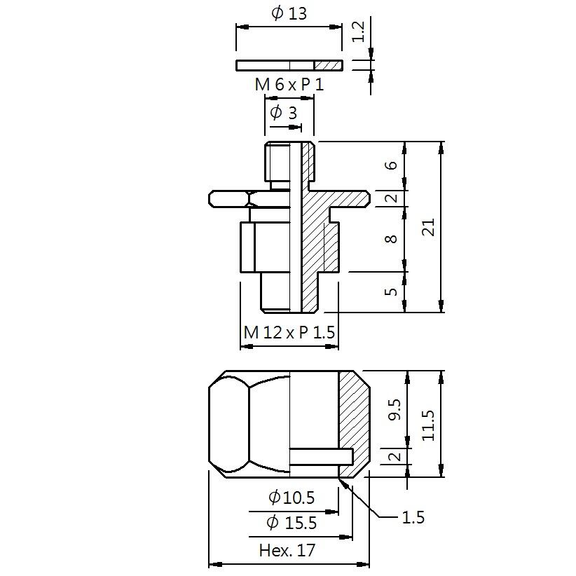 真空螺丝-外牙X型 螺牙 M6 - 盘面 17H - 高度 21 (A6X-143)