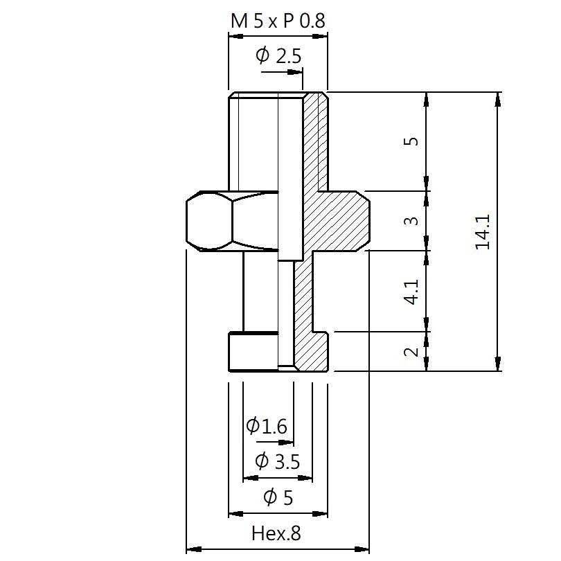 真空螺丝-外牙B型 螺牙 M5 - 盘面 5 - 高度 14.1 (A5B-001)