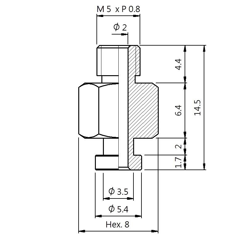 真空螺丝-外牙B型 螺牙 M5 - 盘面 5.4 - 高度 14.5 (A5B-011)
