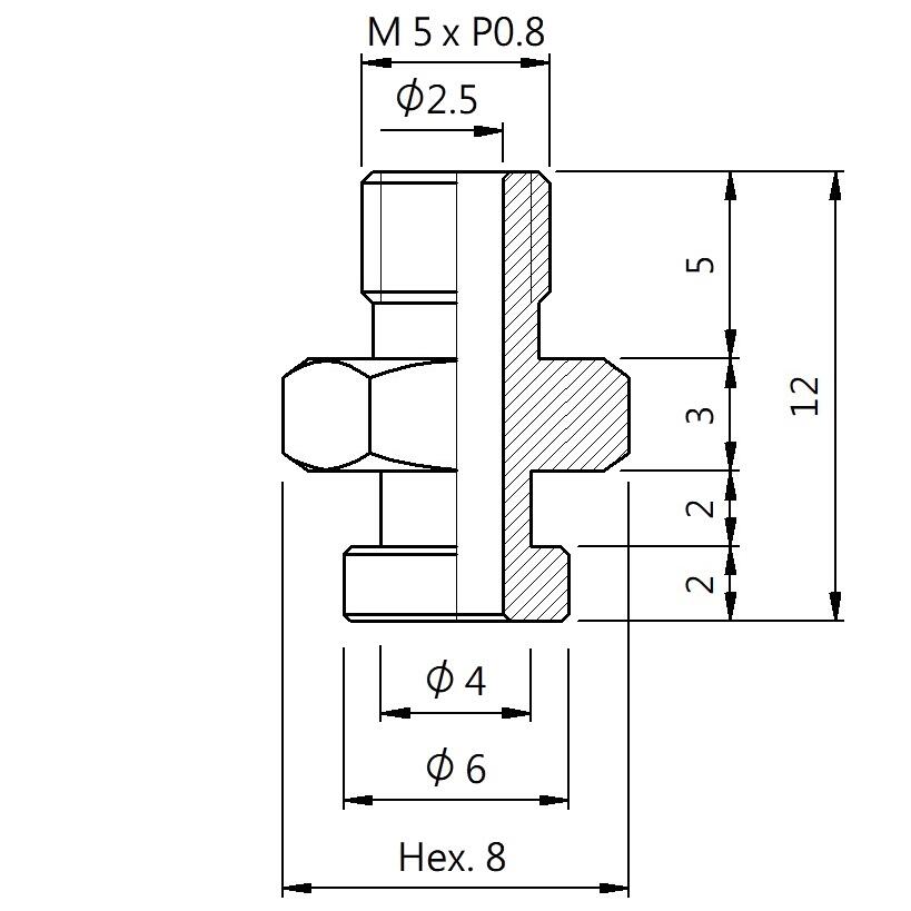 真空螺丝-外牙B型 螺牙 M5 - 盘面 6 - 高度 12 (A5B-018)