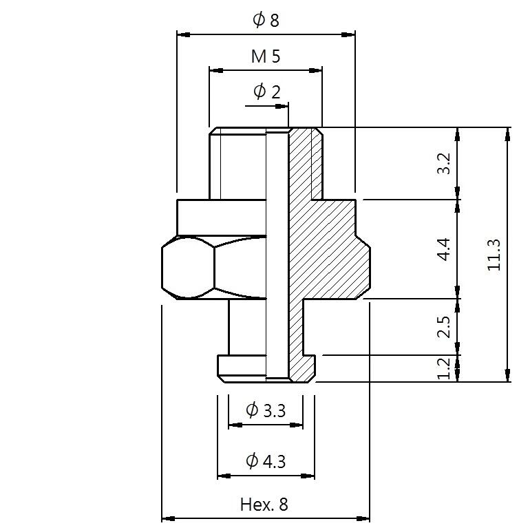 真空螺丝-外牙B型 螺牙 M5 - 盘面 4.3 - 高度 11.3 (A5B-022)