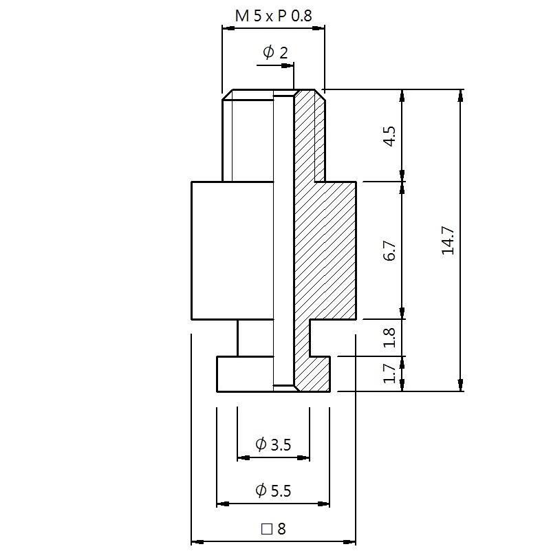 真空螺丝-外牙B型 螺牙 M5 - 盘面 5.5 - 高度 14.7 (A5B-027)