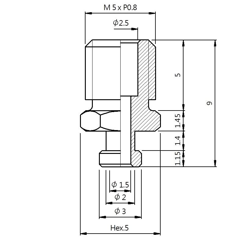 真空螺丝-外牙B型 螺牙 M5 - 盘面 3 - 高度 9 (A5B-066)