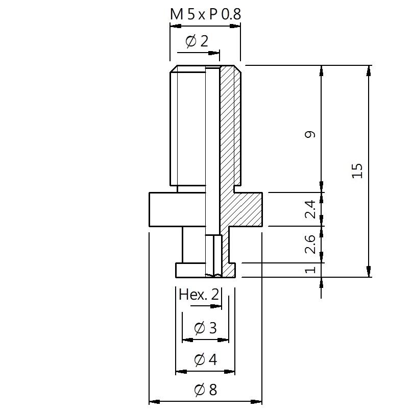 真空螺丝-外牙B型 螺牙 M5 - 盘面 4 - 高度 15 (A5B-083)