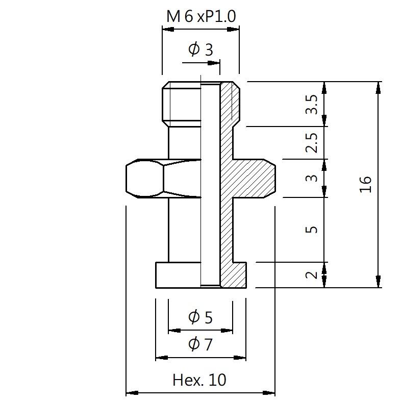 真空螺丝-外牙B型 螺牙 M6 - 盘面 7 - 高度 16 (A6B-076)