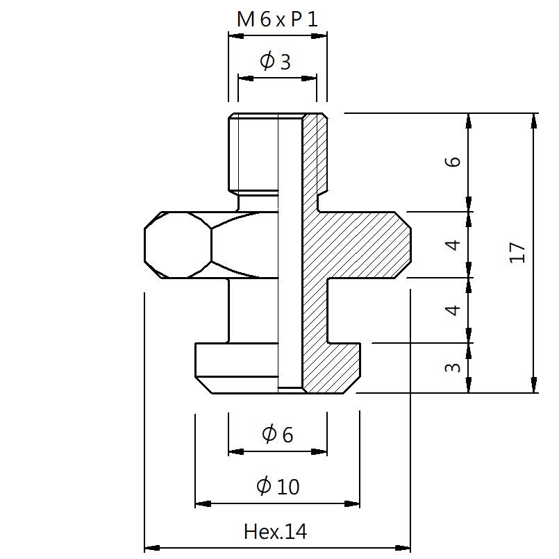 真空螺丝-外牙B型 螺牙 M6 - 盘面 10 - 高度 17 (A6B-146)