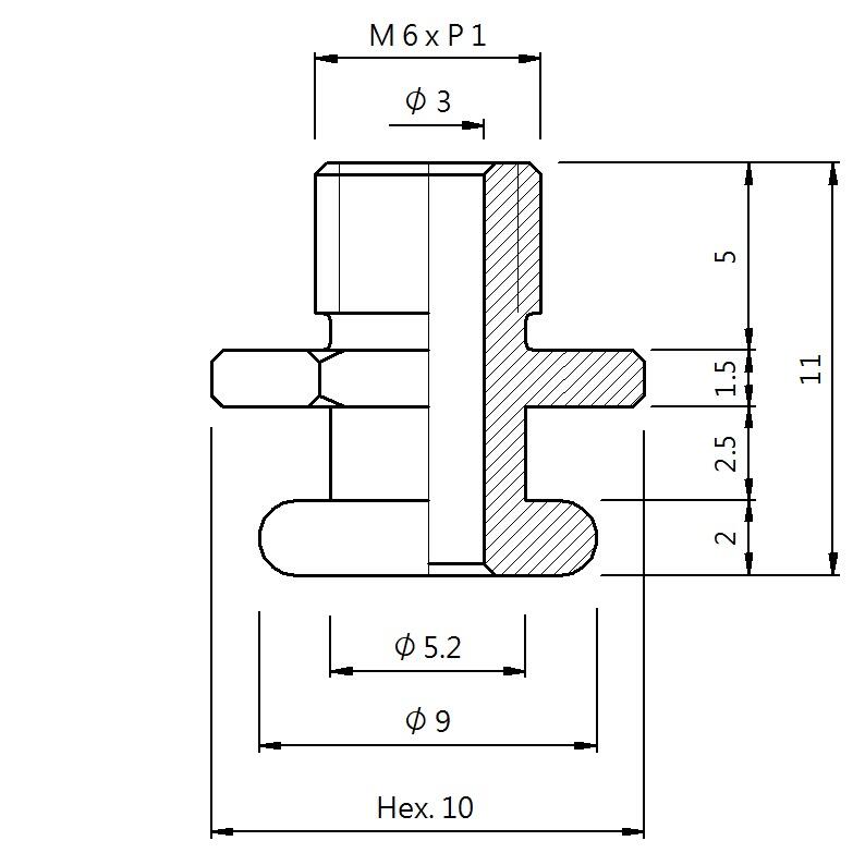 真空螺丝-外牙B型 螺牙 M6 - 盘面 9 - 高度 11 (A6B-164)