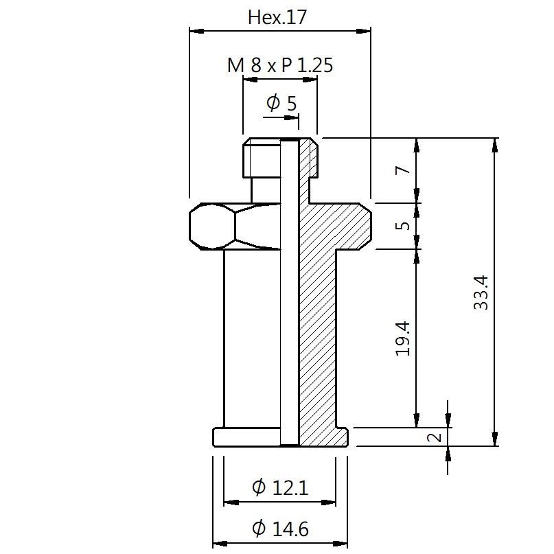 真空螺丝-外牙B型 螺牙 M8 - 盘面 14.6 - 高度 33.4 (A8B-077)