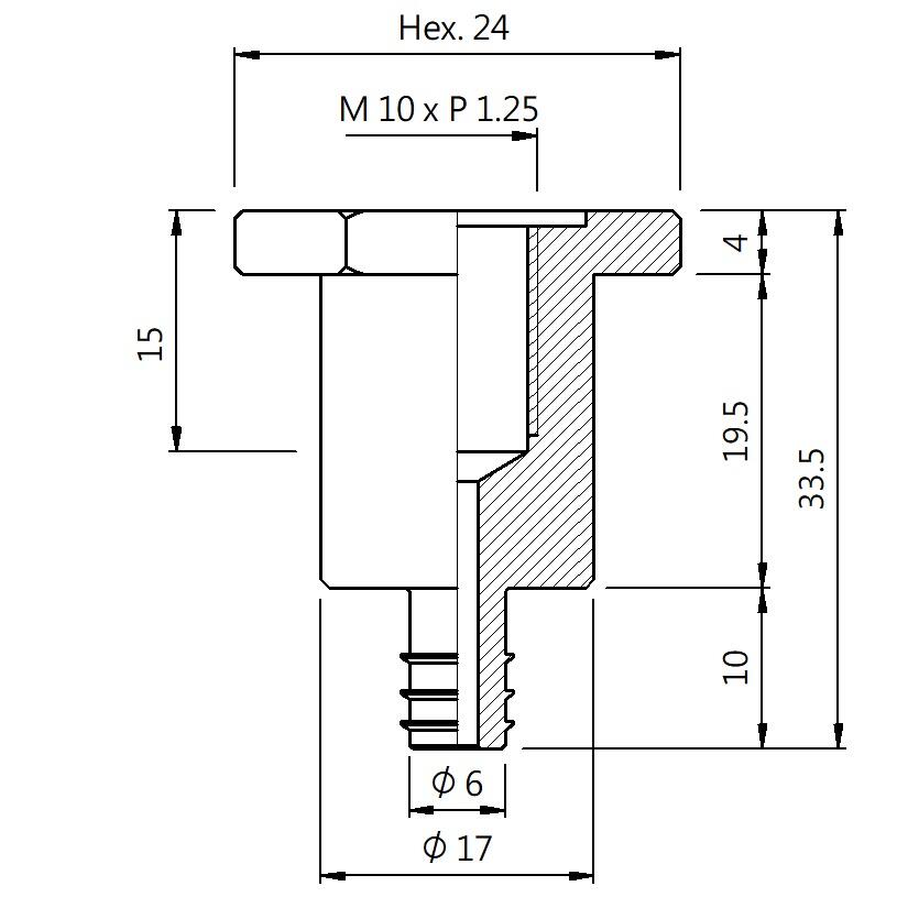 真空螺丝-內牙Y型 螺牙 M10 - 盘面 6 - 高度 33.5 (B10Y-135)