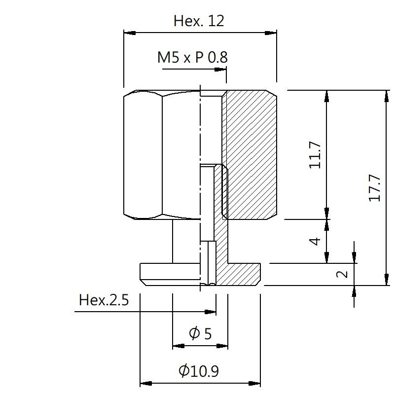 真空螺丝-內牙B型 螺牙 M5 - 盘面 10.9 - 高度 17.7 (B5B-080)