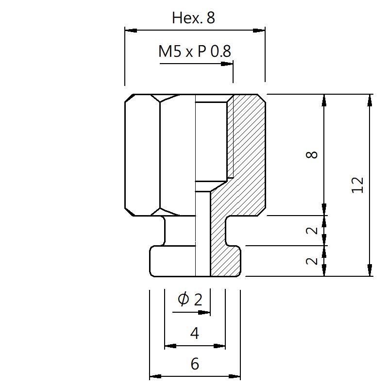 真空螺丝-內牙B型 螺牙 M5 - 盘面 6 - 高度 12 (B5B-156)