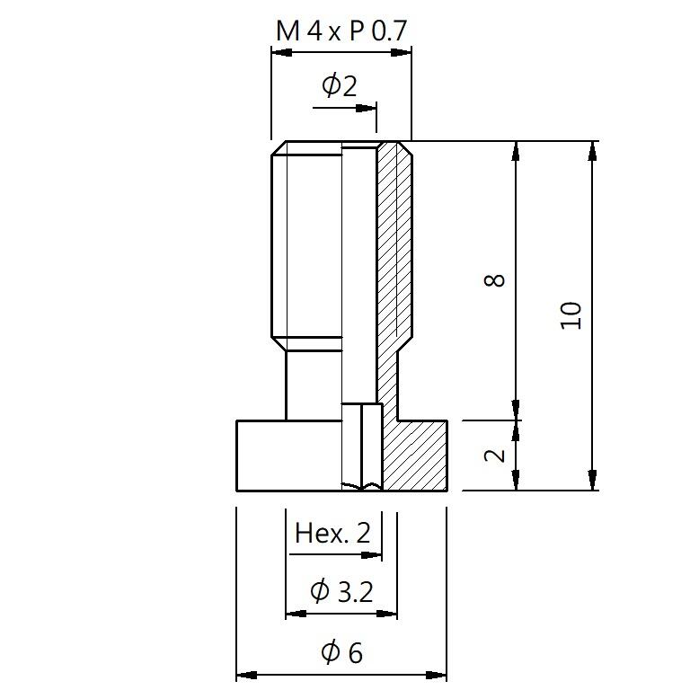 真空螺丝-外牙T型 螺牙 M4 - 盘面 6 - 高度 10 (A4T-090)