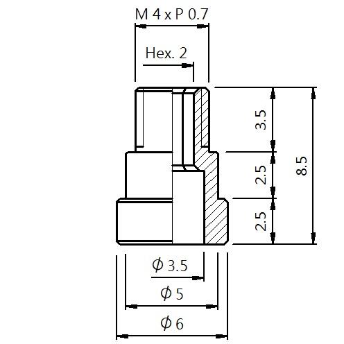 真空螺丝-外牙T型 螺牙 M4 - 盘面 6 - 高度 8.5 (A4T-157)