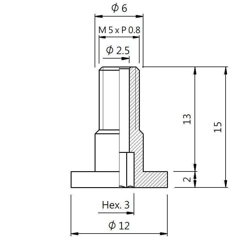 真空螺丝-外牙T型 螺牙 M5 - 盘面 12 - 高度 15 (A5T-043)