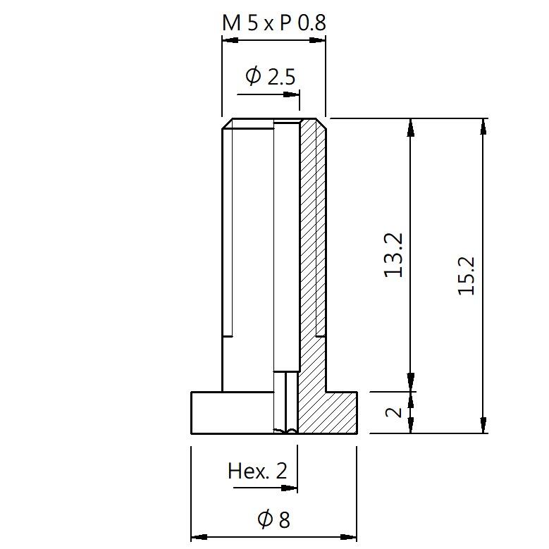 真空螺丝-外牙T型 螺牙 M5 - 盘面 8 - 高度 15.2 (A5T-058)