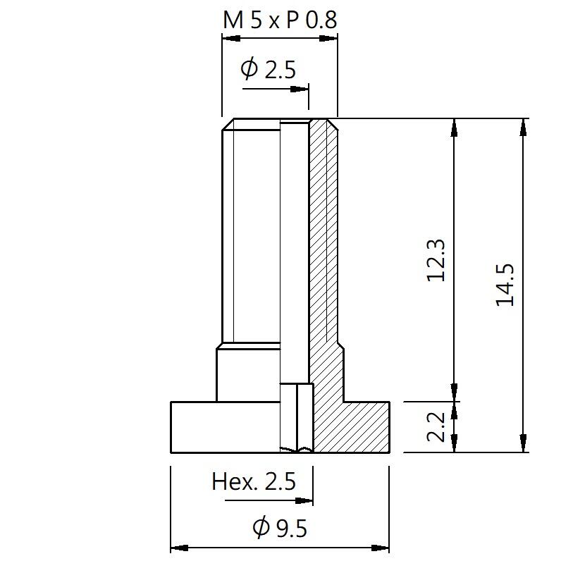 真空螺丝-外牙T型 螺牙 M5 - 盘面 9.5 - 高度 14.5 (A5T-086)