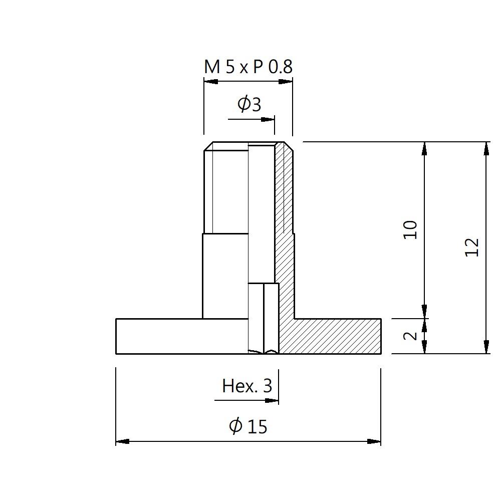 真空螺丝-外牙T型 螺牙 M5 - 盘面 15 - 高度 12 (A5T-096)