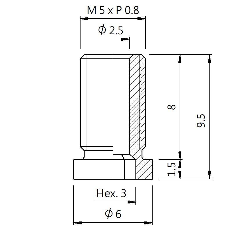 真空螺丝-外牙T型 螺牙 M5 - 盘面 6 - 高度 9.5 (A5T-139)