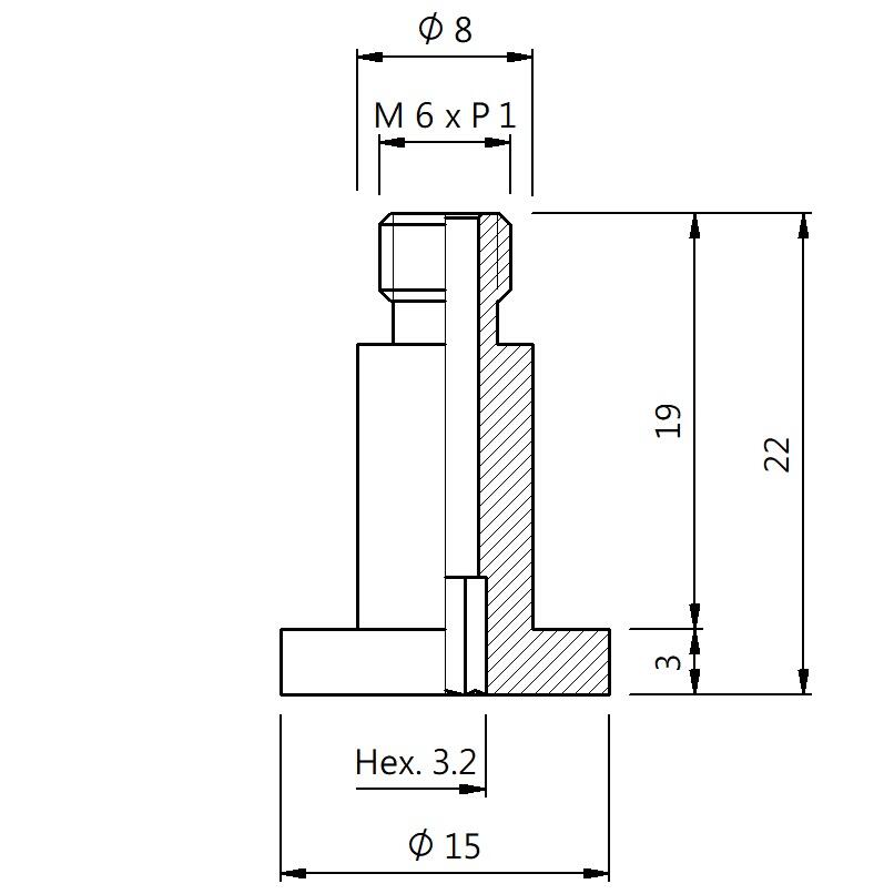 真空螺丝-外牙T型 螺牙 M6 - 盘面 15 - 高度 22 (A6T-063)
