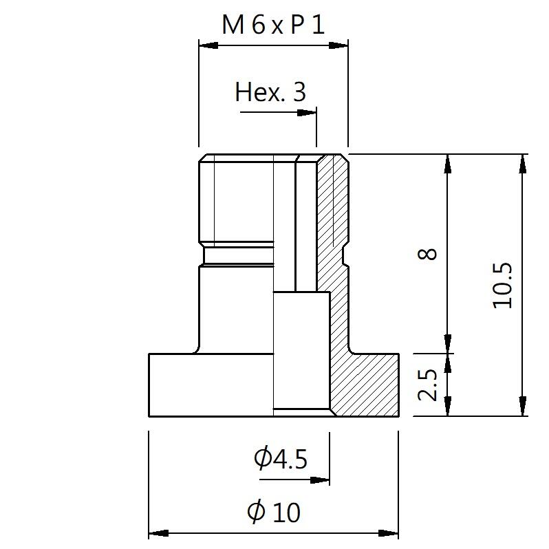 真空螺丝-外牙T型 螺牙 M6 - 盘面 10 - 高度 10.5 (A6T-158)