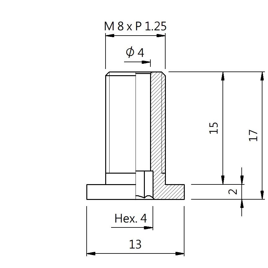 真空螺丝-外牙T型 螺牙 M8 - 盘面 13 - 高度 17 (A8T-060)