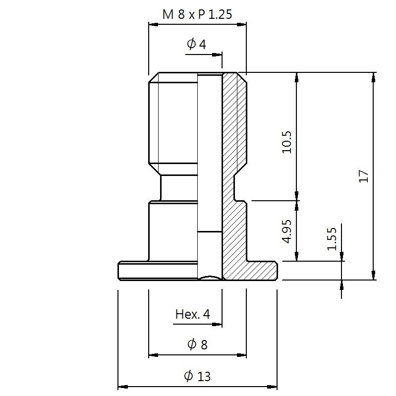 真空螺丝-外牙T型 螺牙 M8 - 盘面 13 - 高度 17 (A8T-092)