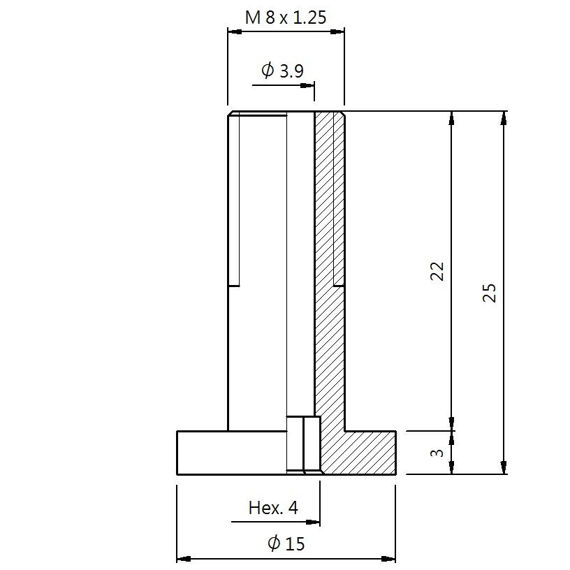 真空螺丝-外牙T型 螺牙 M8 - 盘面 15 - 高度 25 (A8T-127)