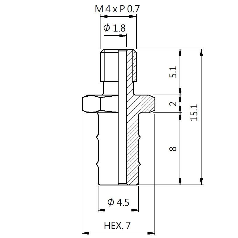 真空螺丝-外牙Y型 螺牙 M4 - 盘面 4.5 - 高度 15.1 (A4Y-107)