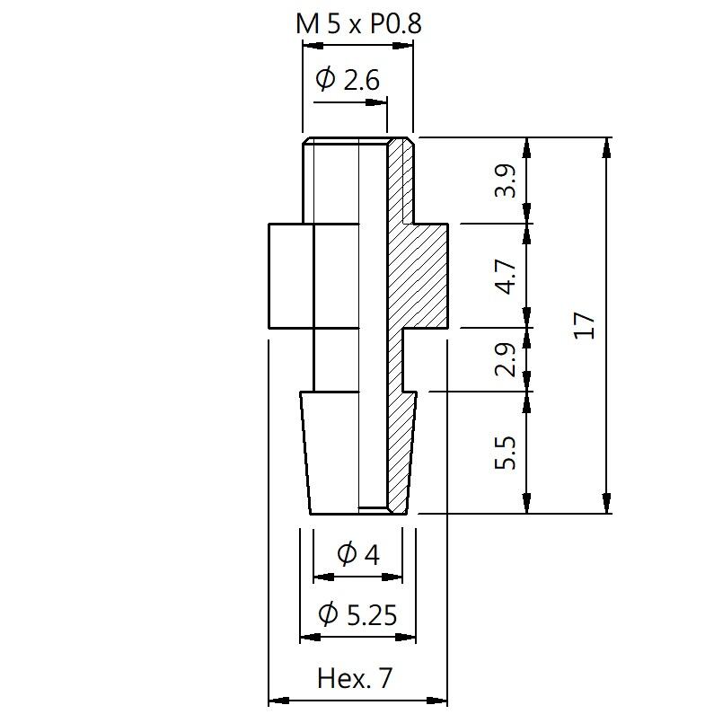 真空螺丝-外牙Y型 螺牙 M5 - 盘面 4 - 高度 17 (A5Y-020)