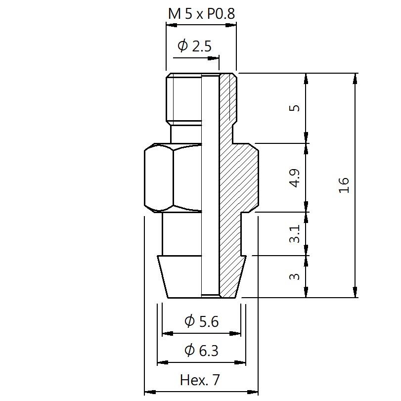 真空螺丝-外牙Y型 螺牙 M5 - 盘面 5.6 - 高度 16 (A5Y-030)