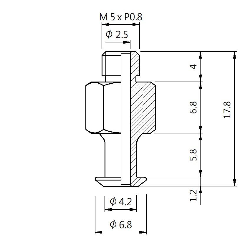 真空螺丝-外牙Y型 螺牙 M5 - 盘面 4.2 - 高度 17.8 (A5Y-068)