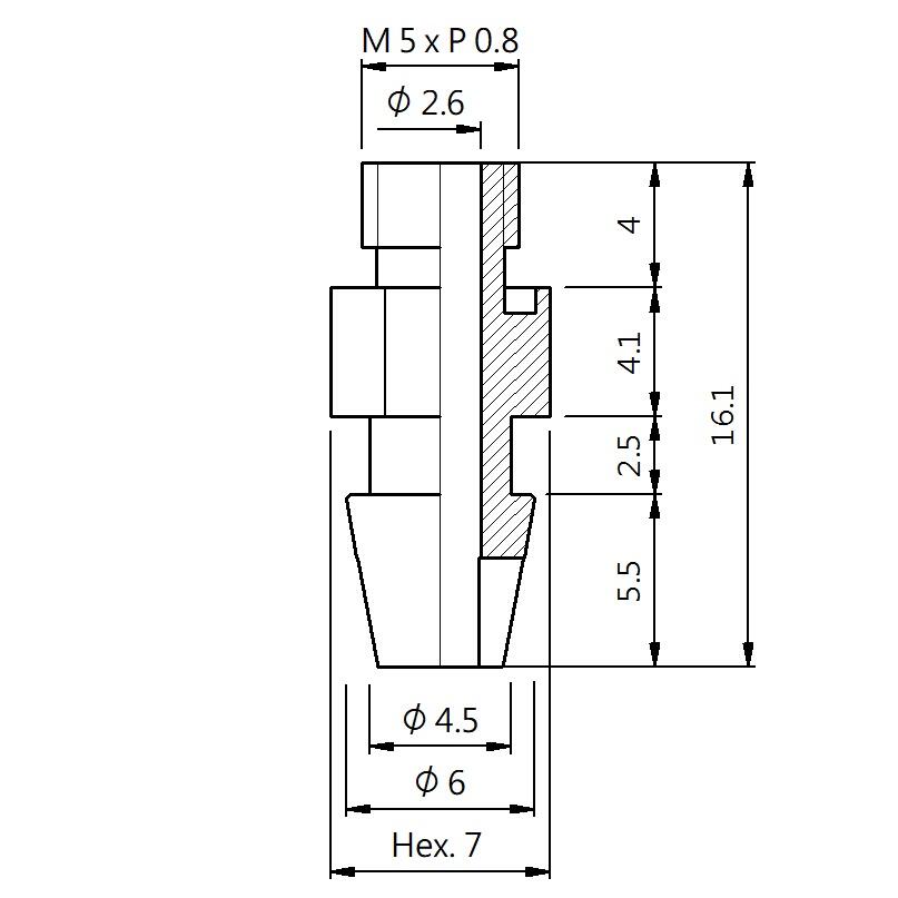 真空螺丝-外牙Y型 螺牙 M5 - 盘面 4.5 - 高度 16.1 (A5Y-169)