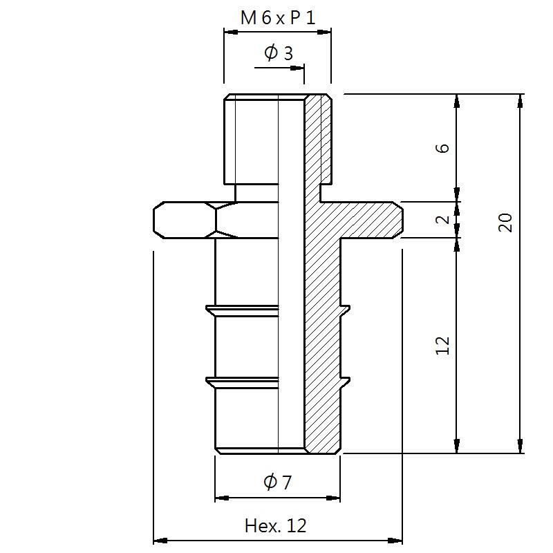 真空螺丝-外牙Y型 螺牙 M6 - 盘面 7 - 高度 20 (A6Y-122)