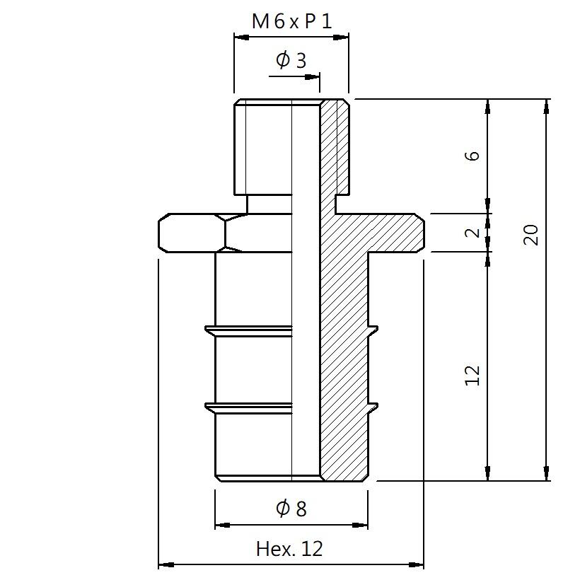 真空螺丝-外牙Y型 螺牙 M6 - 盘面 8 - 高度 20 (A6Y-132)