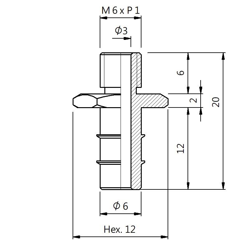 真空螺丝-外牙Y型 螺牙 M6 - 盘面 6 - 高度 20 (A6Y-134)