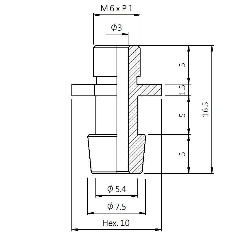 真空螺丝-外牙Y型 螺牙 M6 - 盘面 7.5 - 高度 16.5 (A6Y-166)