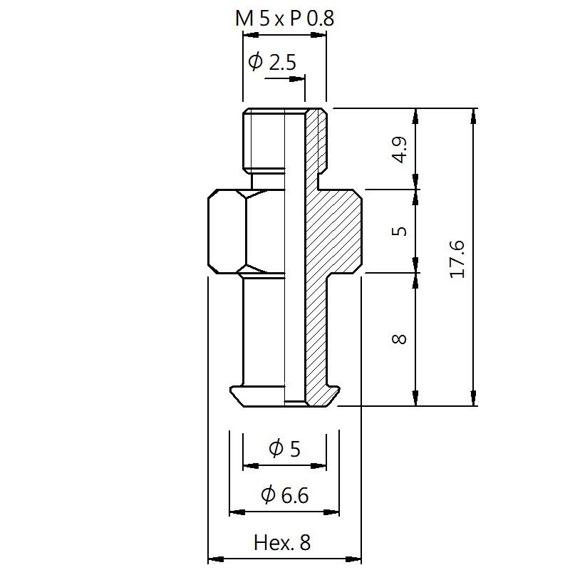 真空螺丝-外牙V型 螺牙 M5 - 盘面 6.6 - 高度 17.6 (A5V-065)