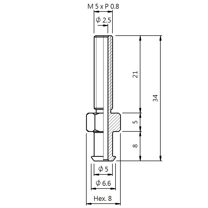 真空螺丝-外牙V型 螺牙 M5 - 盘面 6.6 - 高度 34 (A5V-149)